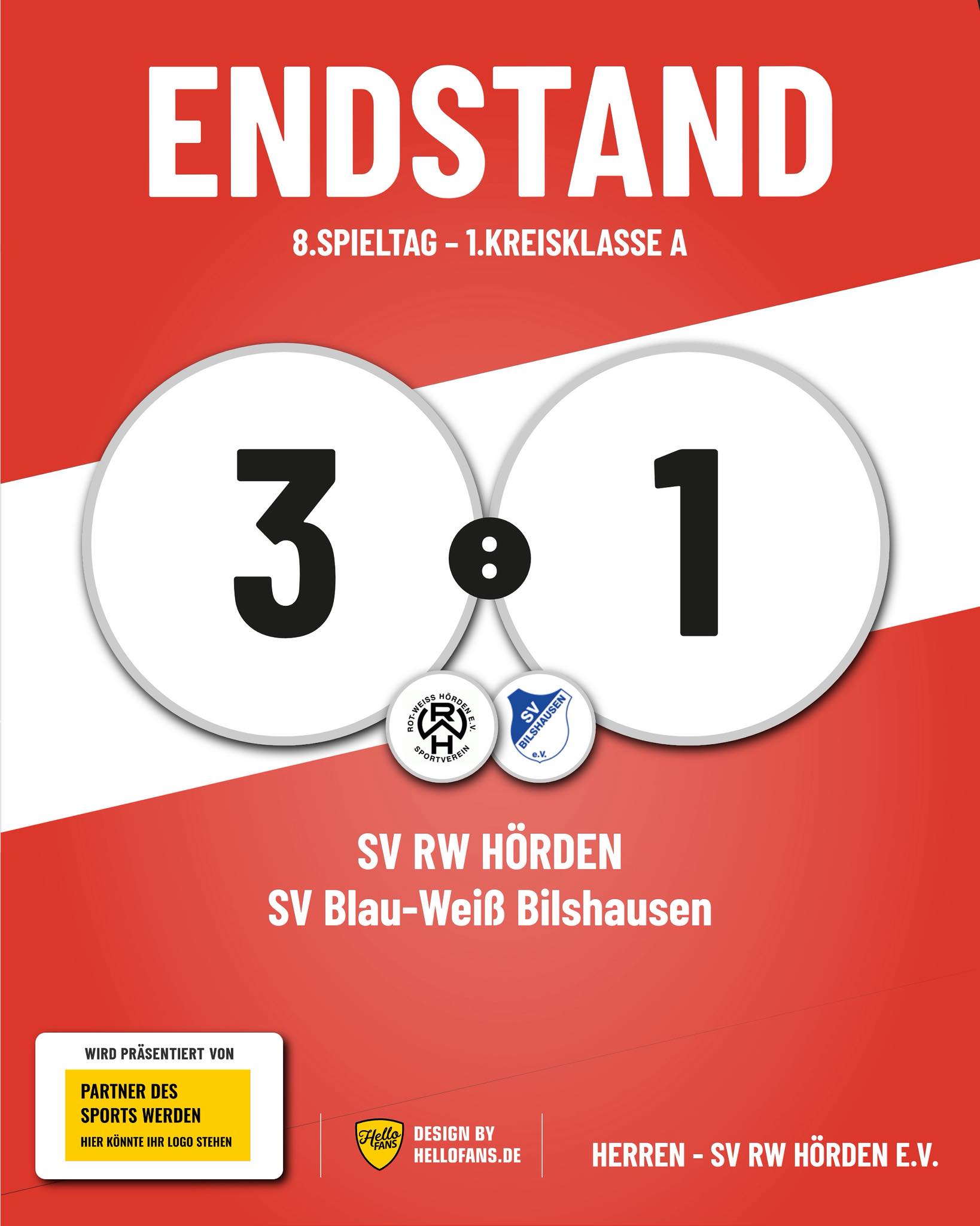 H.Strüber erzielte in der 74. Minute den Bilshäuser Ehrentreffer. Danach passierte nichts mehr – und der RWH schlägt somit den Zweitplatzierten aus dem Eichsfeld mit 3:1.