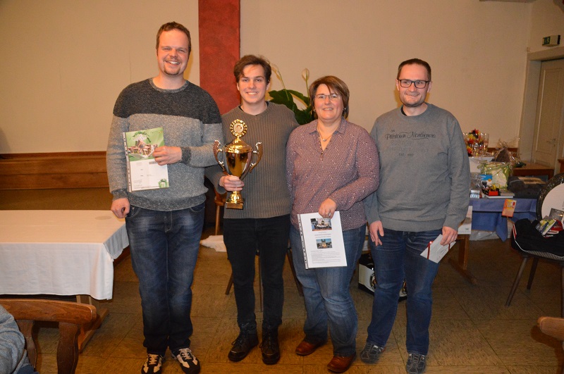 Beim diesjährigen Knobelabend des SV Rot-Weiß Hörden gewann mit 36.250 Punkten Gregor Beuershausen als Newcomer den Wanderpokal und einen Gutschein der Fa. Klawonn & Lüer über eine Heizungswartung. Den 2. Platz erspielte sich mit 35.450 Punkten Sven Hoppe. Gemeinsame Dritte wurden mit 35.150 Punkten Anke Kliemann und Raimund Grüneberg. Attraktive Preise, dank der Sponsoren und ein Essen nach der 1. Runde sorgten für eine gute Stimmung und einen schönen Abend. Im Bild die Erstplatzierten.